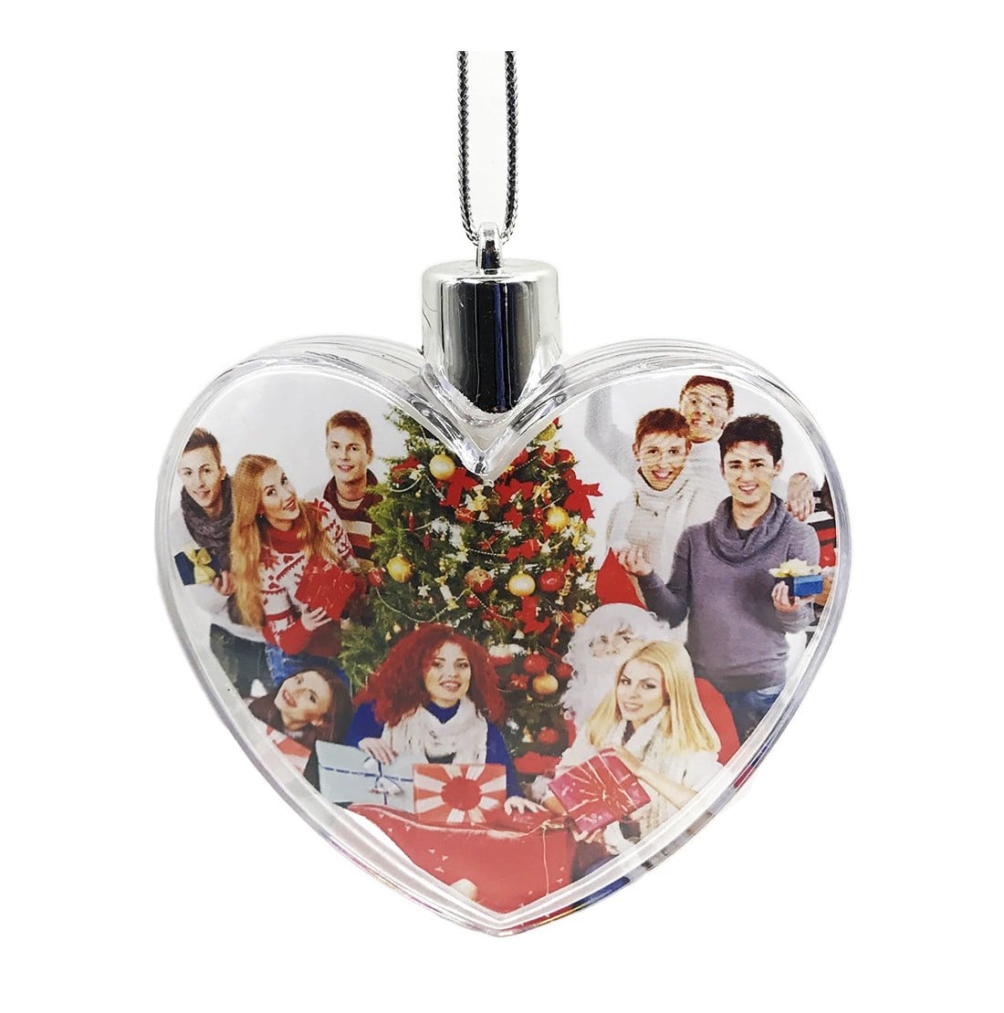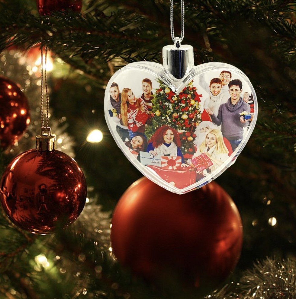 Glob foto inima personalizat cu 2 poze este confectionat din plastic.